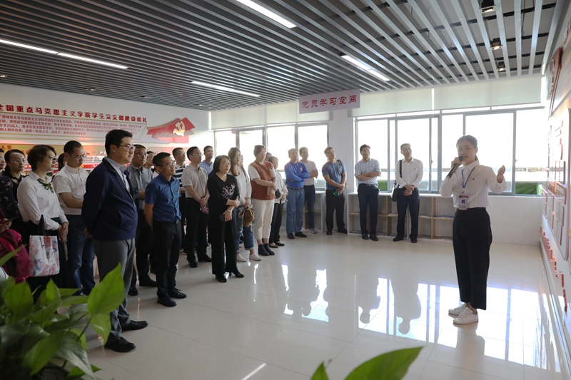 广西师范大学干部教育培训学院常务副院长、党委组织部副部长(正处长级)吴骞、组织部副部长郑开玲等同志热情接待了调研人员。调研组在起文楼大厅,认真聆听了师大办学历史、办学成就和校区规划介绍;学习了“全国百个研究生样板支部”教育学部教育经济与管理专业研究生党支部建设的主要举措,翻阅了支部规范的工作材料;在参观文学院/新闻与传播学院党建文化长廊中,实地感受到学院党建工作特色和亮点;在恬园学生社区学生之家,就其建设情况进行了交流。