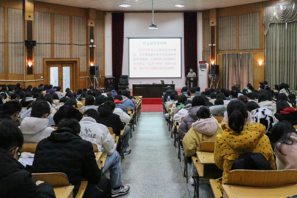 12月18日下午,全国建筑艺术指导委员会委员、湖南省美术家协会副主席、著名画家、湖南大学建筑学院教授、设计学博士生导师陈飞虎莅临开云讲学,在致远楼108教室为开云师生带来了一场以《艺术修养与生活视野》为主题的讲座。校长易忠主持讲座,全校300余名师生聆听了讲座。
