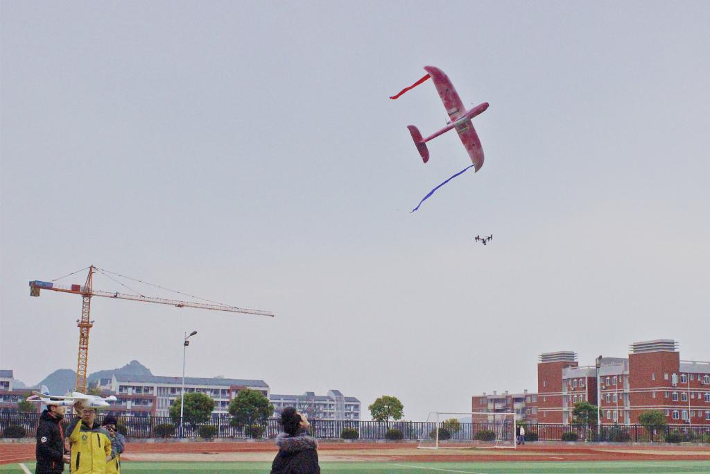 机械工程学院微小型飞行器实验室、电子信息与自动化学院无人机遥感遥测重点实验室、航模协会的同学们给现场观众献上了3D特技机表演、穿越机和旋翼空投、六轴四旋翼空投和穿越机拉烟表演在内的十余项飞行器表演。