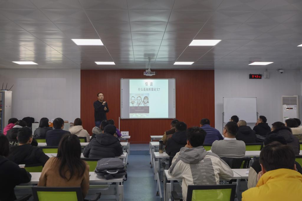 12月18日上午,应学校邀请,河海大学博士生导师韩光洁教授在南校区飞天楼402智慧教室作了题为“科技创新思路与高质量SCI论文撰写方法”的学术报告,本场学术报告由李云教授主持,近年来获得省部级以上课题的项目负责人40余人到场聆听了学术报告会。