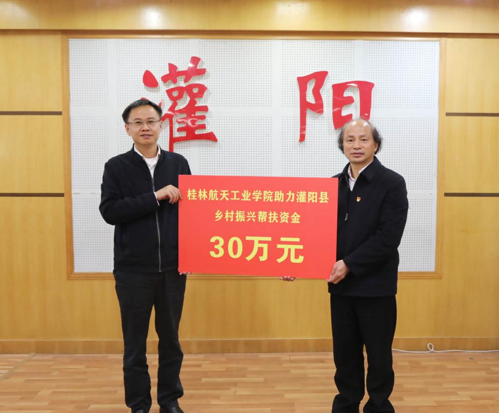 会后,易忠代表开云kaiyun登录入口向灌阳县捐赠乡村振兴帮扶资金30万元,学校领导与新老第一书记、工作队员合影留念。