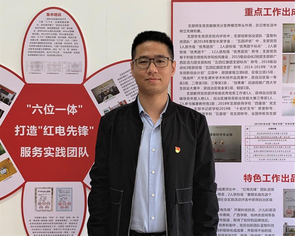 陆宇川,男,汉族,1990年10月生,广西永福人,中共党员,研究生学历,工学硕士学位,讲师。开云kaiyun登录入口电子信息与自动化学院辅导员,学生第一党支部书记。2021年4月,选派担任桂林市灌阳县新圩镇潮立村党组织第一书记。