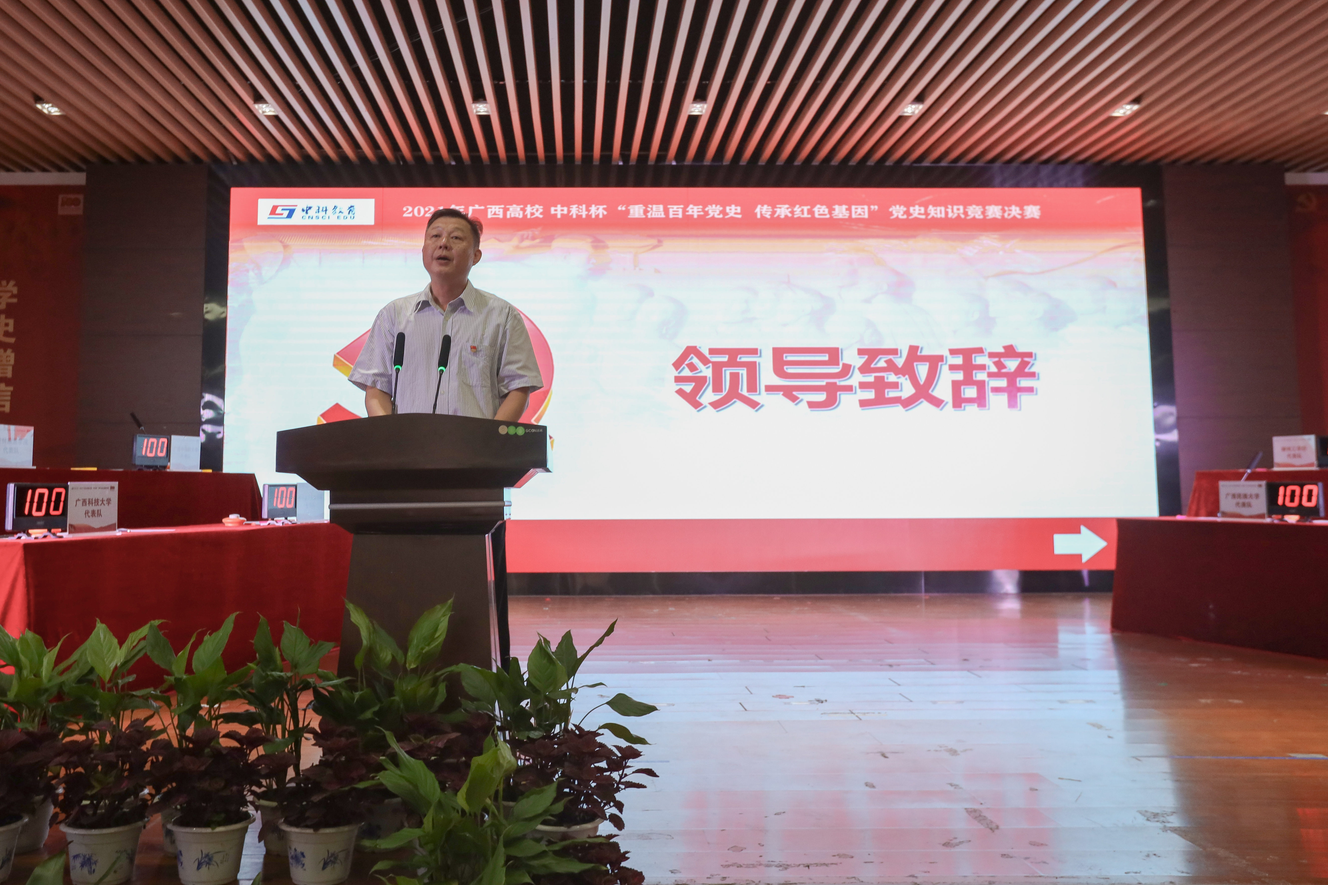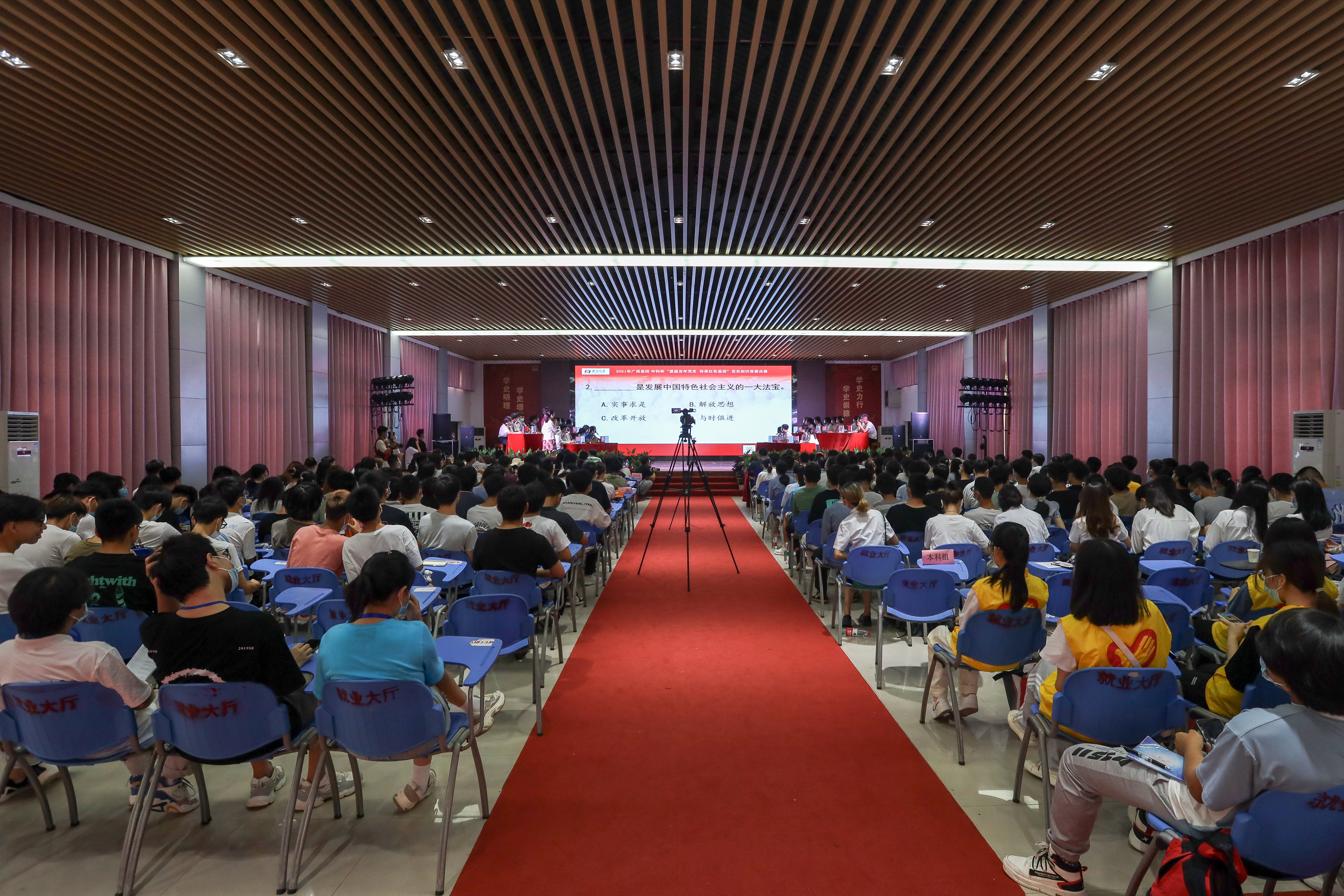 6月19日,由开云承办的2021年广西高校图书馆中科杯“重温百年党史 传承红色基因”党史知识竞赛决赛在北校区招聘大厅举行。胡泽民副校长出席活动并代表学校致辞。全区19个高校代表队及学生观众300余人参加活动。