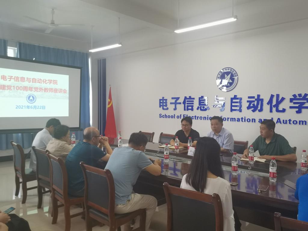 6月22日下午,孙山林副校长参加电子信息与自动化学院庆祝建党100周年党外教师座谈会,电子信息与自动化学院领导、党外教师代表40余人参加会议。