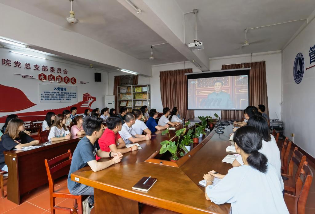 学校全体校领导、全体中层干部在飞天楼520会议室集中收看庆祝大会盛况。学校各学院、各单位组织师生通过广播、电视、网络等媒体在教室、会议室、办公室、宿舍收听收看庆祝大会直播。