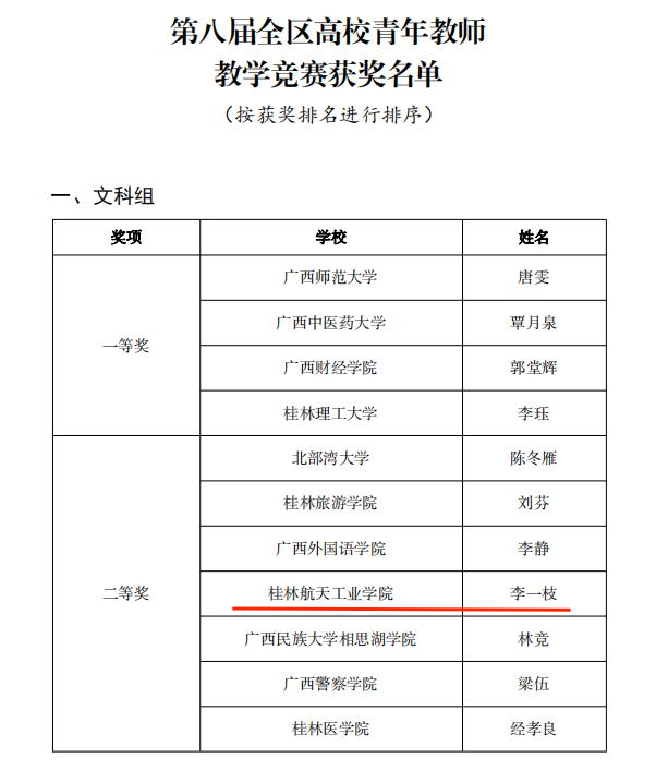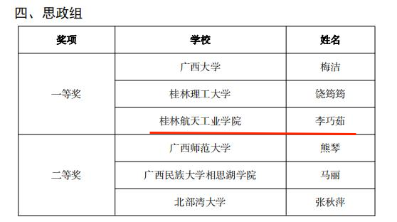 近日,由自治区教育厅、自治区教育工会委员会主办的第八届广西高校青年教师教学竞赛在广西师范大学圆满落下帷幕。来自全区36所院校的127名高校教师参加了本次比赛,赛程为期三天,在文科、理科、工科、思政、医科五个组别里展开较量。开云选派4名教师参加比赛。经过激烈的角逐,马克思主义学院李巧茹荣获一等奖;汽车工程学院黄祥莉、外语外贸学院李一枝荣获二等奖;理学院吴珂荣获三等奖。这是开云参加参加区级青教比赛整体成绩最好的一次。