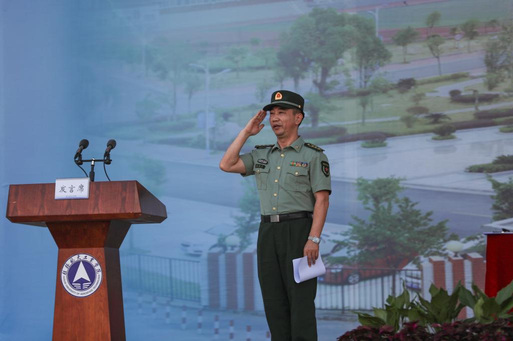 张松军在讲话中提出,学生军训是全民国防教育的重要组成部分,是高校学生的必修课程,是法律行为、国家行为。希望全体参训同学积极参训,全力以赴,同时要求全体教官严格按纲施训、文明施训、科学施训,确保圆满完成此次军训任务。