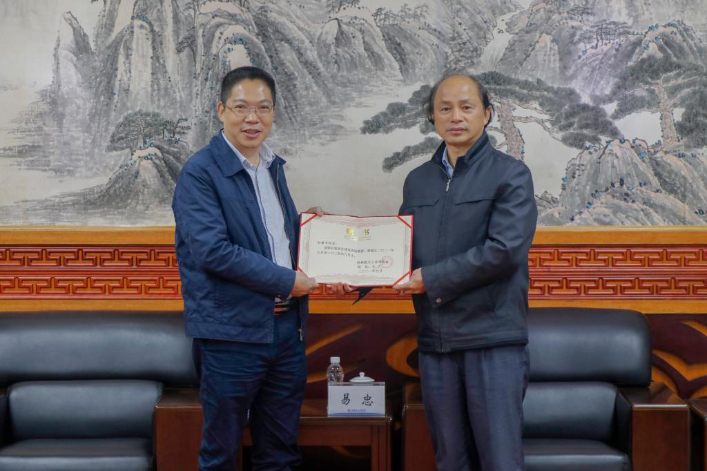 易忠校长接待了孙建书一行,并为他颁发了客座教授聘书,双方围绕校企合作、教学与研究需求、讲座与培训课程等方面展开了深入交流与探讨。