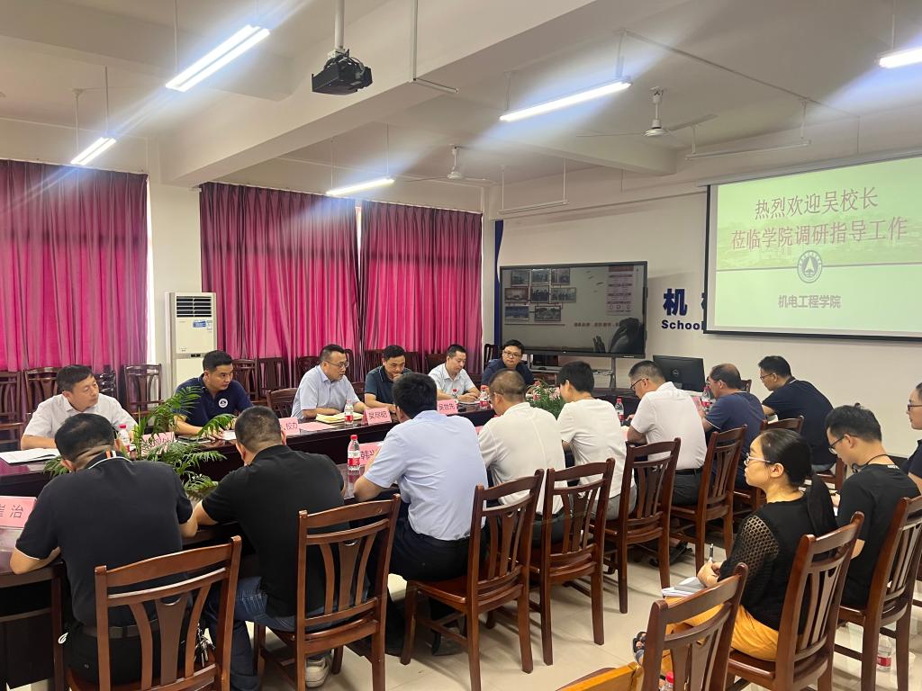 9月6日下午,在机电工程学院,学院主持行政工作负责人从学院情况、科研团队、在校生情况、校内实验室,以及硕士点建设等方面进行汇报,并对学院学科建设、硕士点申报等方面取得的进展、面临的问题及发展的规划进行阐述。期间,科研教学负责人分别从科研建设、教学培育及产业学院申报等方面进行反馈。学科教师代表还就学科方向凝练、师资队伍建设、科研水平提升等方面同校领导开展深入交流。