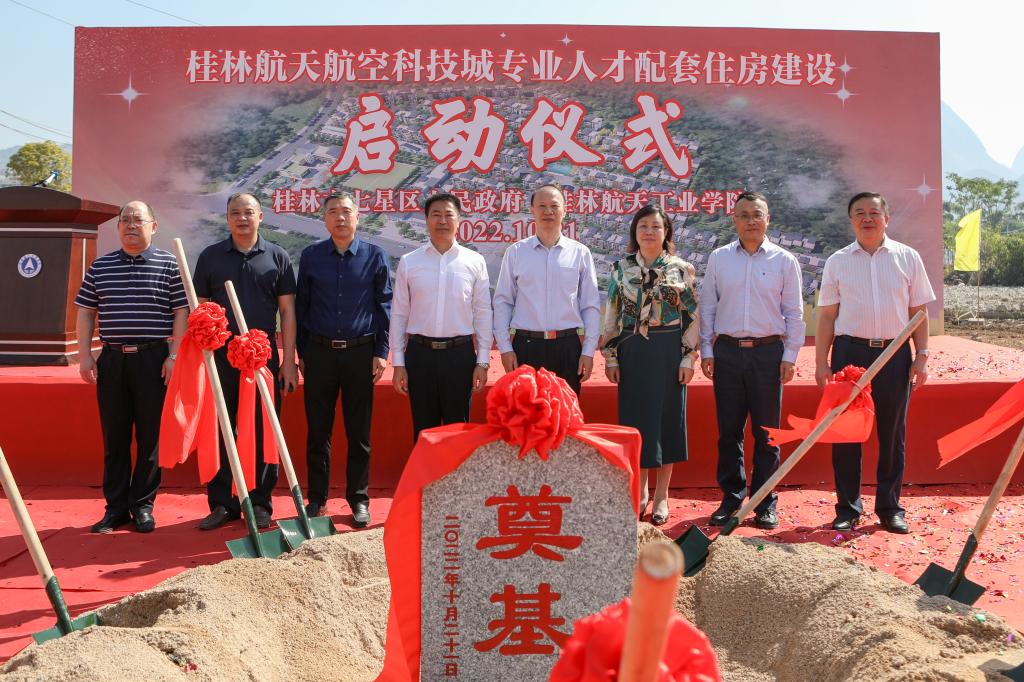 李幼平宣布项目破土动工,并邀请出席领导为项目启动奠基培土。桂林航天航空科技城专业人才配套住房建设项目正式启动。