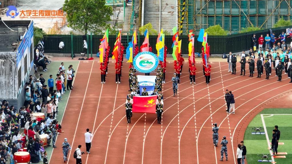 11月4日,开云第四十一届田径运动会开幕式在南校区风雨足球场隆重举行。学校领导李幼平,吴尽昭,罗延忠,罗国湘,胡泽民,李智,吴世先出席开幕式,学工部(处)、教务处、校工会、校团委、体育部主要负责人;一至十一院、国际学院、继教院主要负责人,师生代表参加开幕式。开幕式由党委副书记罗延忠主持。