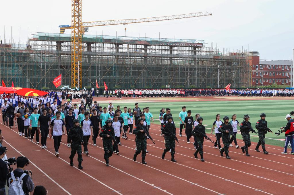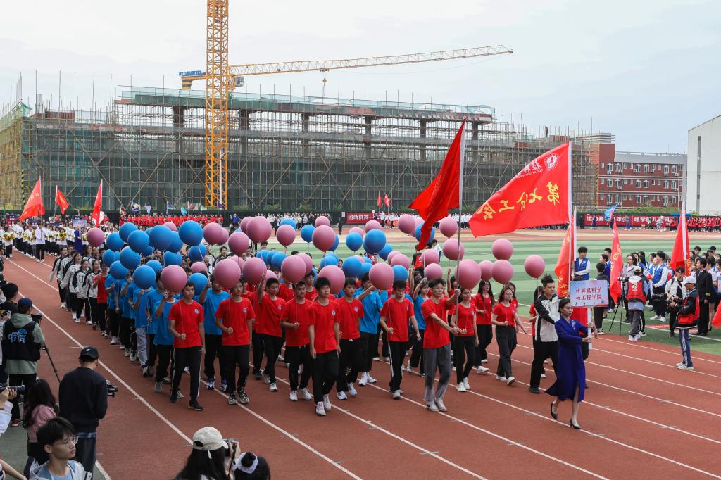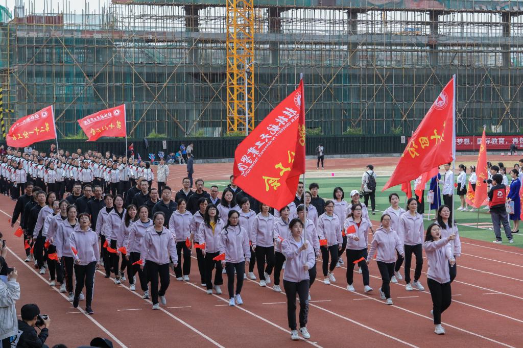 校长吴尽昭在致辞中希望全校师生都能积极参与各类体育健身活动,让体育运动成为一种习惯,让身心健康成为一种追求,以健康的体魄和饱满的精神状态投入到工作和学习当中,并预祝全体运动员在比赛中取得优异成绩,校运会圆满顺利举行。运动员代表和裁判员代表分别宣誓,表示严格遵守比赛规则,做到公平,公正,公开,展现体育新风尚,努力奋斗,争创佳绩。