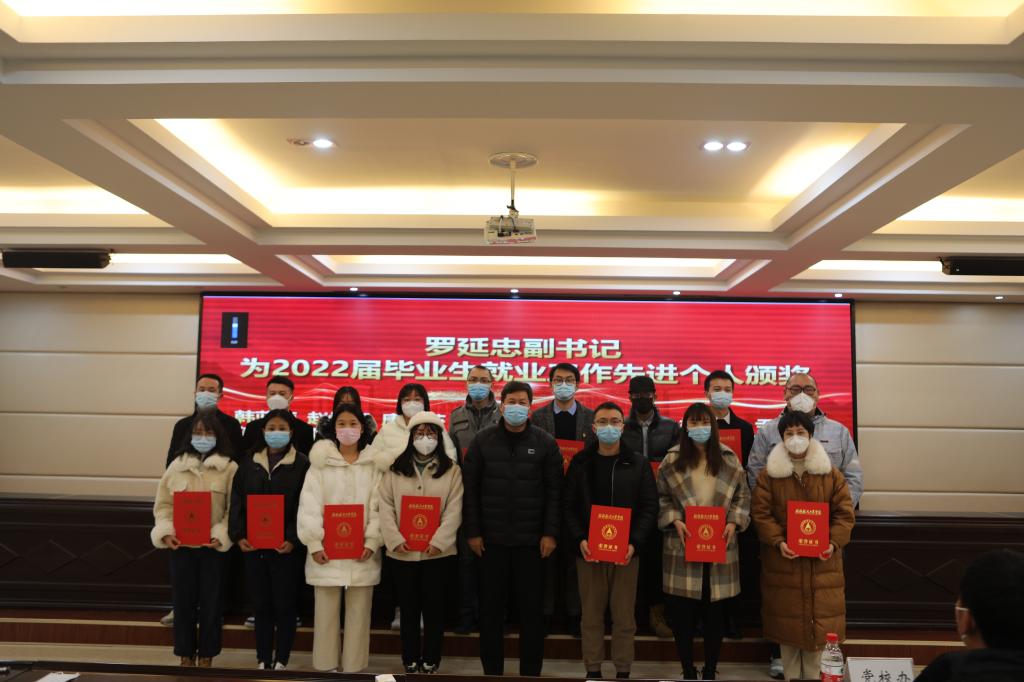 会上,罗延忠宣读了学校《关于公布2022届毕业生就业工作获奖名单的通知》《关于确定2023届毕业生就业工作目标的通知》文件。出席会议的校领导分别为获奖单位和个人进行了颁奖。