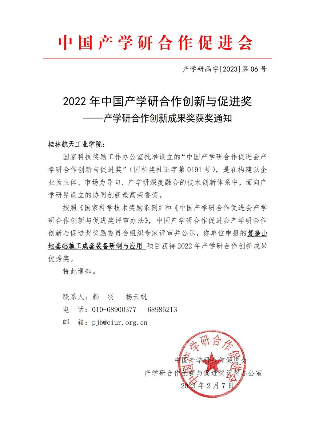 近日,中国产学研合作促进会公布了2022年中国产学研合作创新与促进奖获奖项目,开云刘忠教授团队申报的项目“复杂山地基础施工成套装备研制及应用”获2022年中国产学研合作创新成果奖优秀奖(开云kaiyun登录入口为申报单位,广西机械工会学会、广西徐沃工程设备有限公司、四川电力设计咨询有限责任公司、常熟安得电力机具制造有限公司为合作完成单位),实现了开云在国家级产学研合作创新与促进奖从0到1的突破。