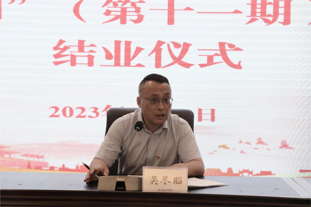 吴尽昭在讲话中指出,此次培训学习内容丰富,形式多样,学风良好,取得了较好的学习成效。他结合学校当前形势和工作任务,提出三点要求,一是要强化理论武装,拧紧思想“总开关”。用好“五学六看”学习方法,学深悟透,笃行不怠,用习近平新时代中国特色社会主义思想凝心铸魂。二是要强化责任担当,练就干事“硬功夫”。要聚焦“硕士学位授予单位”建设目标,主动补短板、优结构、聚人心、激活力。中层干部要加强思想淬炼、政治历练、实践锻炼和专业训练,勇于担当,善作善成,成为本职工作的“行家里手”。三是要强化清廉开云,筑牢廉洁“防火墙”。要继续锚定“党风优良、校风清明、教风清正、学风清新”总目标总要求,围绕“党建引领、治理规范、队伍清正、文化清新”的建设标准,不断推动清廉开云建设走深走实。