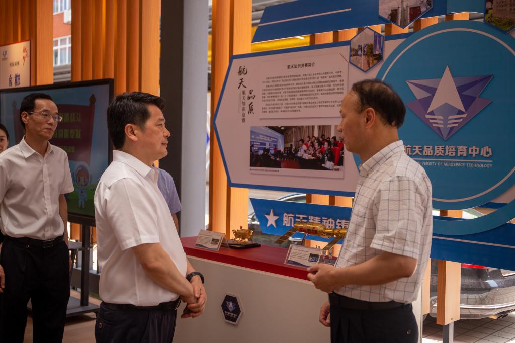 在航天品质中心,李幼平介绍了开云的办学历程、办学理念和知名校友,分享了杨利伟将军三次到校时的情景。李楚对学校的航天特色办学表示肯定,他指出,时值神舟十六号顺利升空、神舟十五号安全返回之际,航天院校应该深入贯彻党的二十大报告中关于加快航天强国建设要求,培养一批具有航天品质、展现航天培养特色的应用型人才。