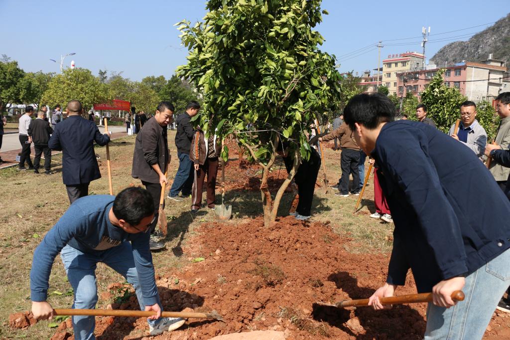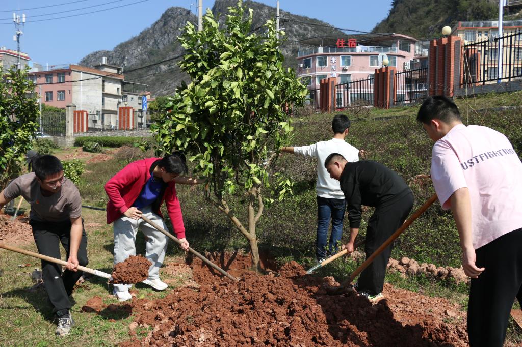 本次植树果树由南宁、桂林、北海等地校友会及部分班级毕业纪念捐赠,栽种地点将命名为“硕果园”,首批栽种45棵,寓意学校建校45年办学成果硕果累累,同时祝愿学校及校友未来事业蒸蒸日上、硕果累累。栽种现场,学校领导、校友代表、师生代表共同挥锹铲土、扶苗填坑、踏土夯苗,在龙年的开春之际,种下了一棵棵寓意希望与收获的果树。大家干劲十足,互相协作,在阳光的照耀下,一棵棵新栽种的果树迎风挺立,焕发出春的生机和活力。每棵树上都挂上捐赠校友的姓名,一棵棵果树代替各位校友留住校园里的青春,每年感受校园里的春华秋实,以此纪念校友们曾留在校园的青春。期待不远的将来,将硕果满枝,为广大师生、校友送上秋天的收获。