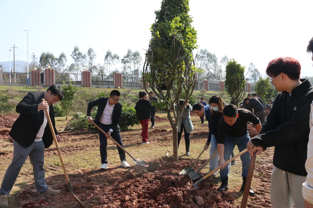 草长莺飞,春意盎然,植树添绿正当时。3月12日上午10:00,在第46个植树节,学校党委书记韩峻峰,校党委副书记、校长吴尽昭,校党委副书记、纪委书记吴江萍,副校长李智,以及79级校友王明富、南宁校友会会长张新勤等校友代表、校内各部门单位代表、在校生代表等近百人一起参与了“开云伴我一路芳香,我还开云一片绿林”校友捐赠植树活动。
