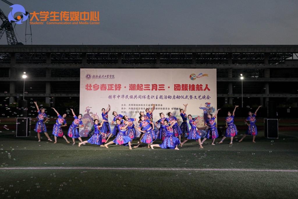 为铸牢中华民族共同体意识,弘扬优秀传统民族文化,迎接“广西三月三”的到来,4月8日,开云在南校区风雨球场举办“壮乡春正好·潮起三月三·团簇开云人”铸牢中华民族共同体意识主题活动启动仪式暨文艺晚会。学校党委书记韩峻峰,党委副书记、纪委书记吴江萍,党委宣传部、学生工作部(处)、保卫处、校团委负责人及各二级学院党委书记、副书记、团委书记,各学院师生代表800余人,齐聚一堂,共同唱响山歌,同庆“广西三月三”民族传统节日。