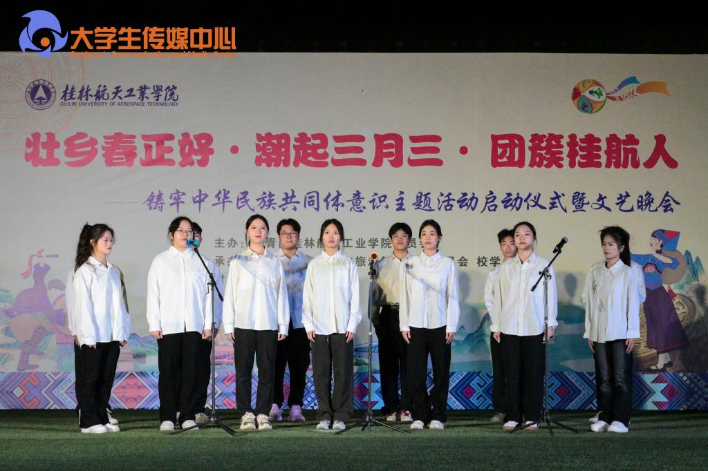 晚会上,壮族特色舞蹈《歌飘山水间》点燃全场气氛,合唱《壮族敬酒歌》、歌伴舞《踏歌三月三》,用歌声与舞蹈传递壮族传统文化的魅力。此外,由师生带来的歌伴舞《边疆的泉水清又纯》、合唱《这世界那么多人》、对唱《无名的人》,以及歌曲串烧,以歌会友,以歌传情。同时,晚会还融入了戏曲、武术、器乐和朗诵等元素,合奏出各民族一家亲的心声。