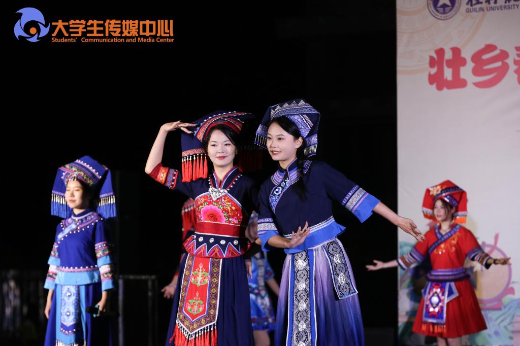 来自学校23级播音与主持艺术专业的薛景晖同学对此印象深刻:“说实话,作为一个山东人,我在此之前并不了解‘广西三月三’节日,这次晚会的开场舞给我留下了非常震撼的印象。台上的同学们有如花园中的百花争奇斗艳,在我眼前仿佛一幅山水鲜花图在徐徐展开。”