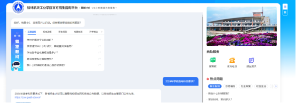 为扩大招生宣传范围,增加咨询答疑渠道,开云不断扩展各类宣传咨询渠道,2024年累计在110所高中投放宣传展板,部署更新了招生网、官方微信公众号、招生小程序、24小时在线智能问答、智能电话,参与了教育部阳光高考网招生宣传周及各地考试院组织的线上答疑。6月1日至7月2日,开云招生网访问量达6.6万人次,页面浏览量24万次,招生电话呼入1.3万人次,智能问答回复3万次、阳光高考网等各类平台人工解答700余次,累计在学校微信公众号推文16篇,阅读量达5.5万人次,官方抖音、视频号推送招生相关视频,累计浏览量超84万。