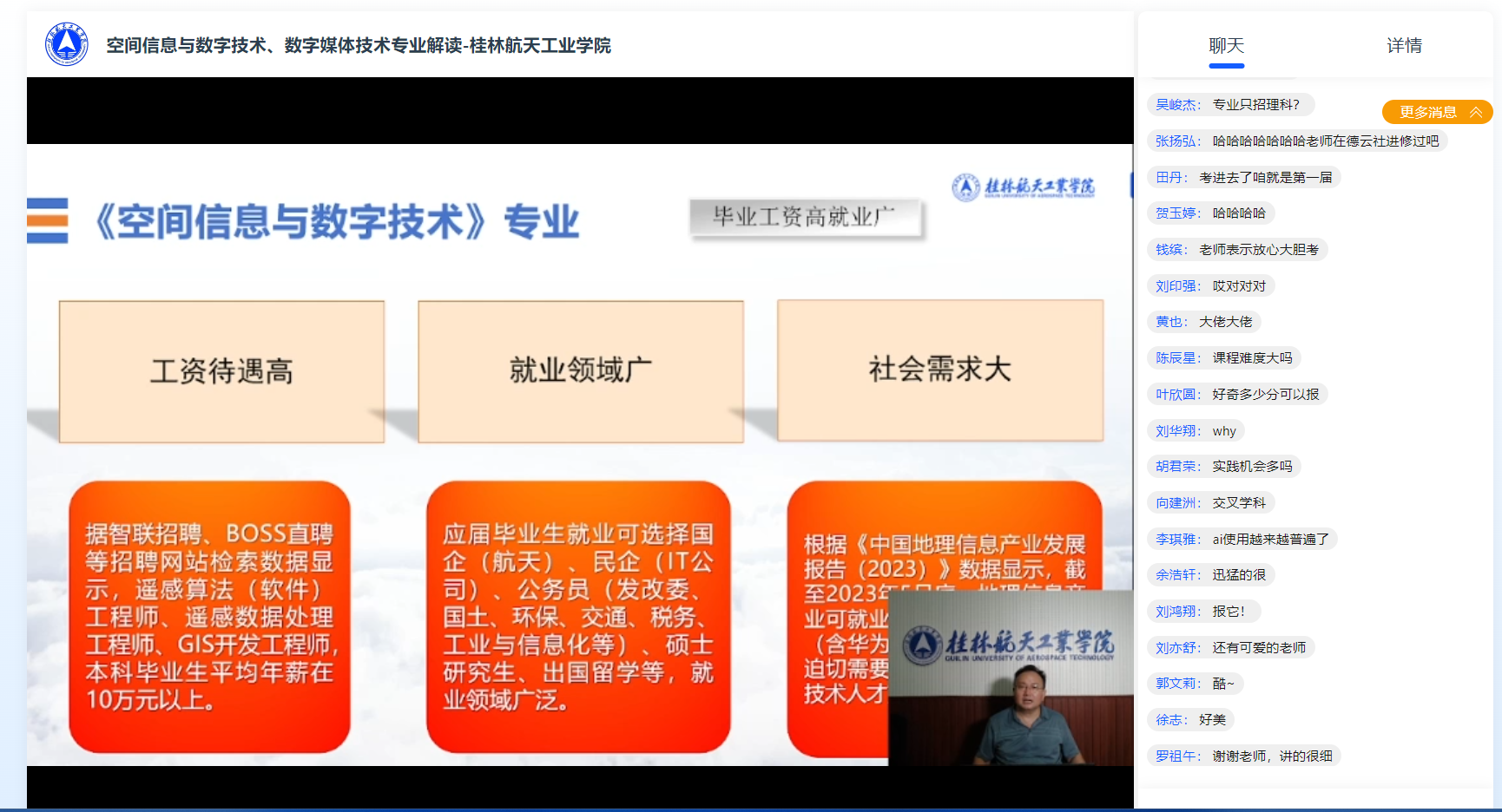 在直播过程中,学校招生宣传人员、各专业骨干教师积极和考生、家长互动,为考生和家长解答关于招生章程、专业办学、培养就业等各类问题,累计直播时长超60个小时。