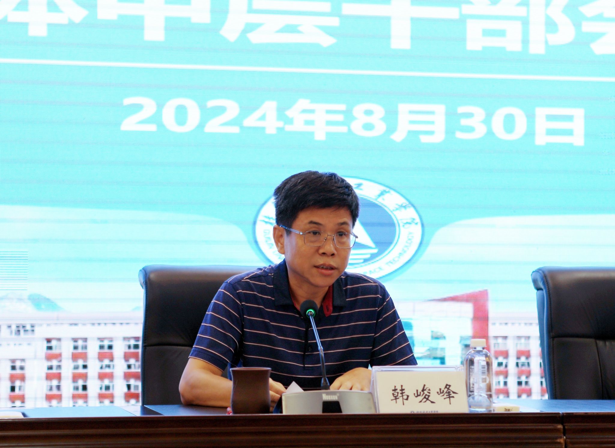 8月30日上午,学校在飞天楼520会议室召开新学期全体中层干部大会,谋划部署2024年秋季学期各项工作任务,动员全体干部进一步统一思想,真抓实干,共同推动学校事业发展取得更大成效。校党委书记韩峻峰总结上半年工作、部署秋季学期工作,校党委副书记、校长吴尽昭主持会议并讲话,全体校领导、中层领导干部参加会议。
