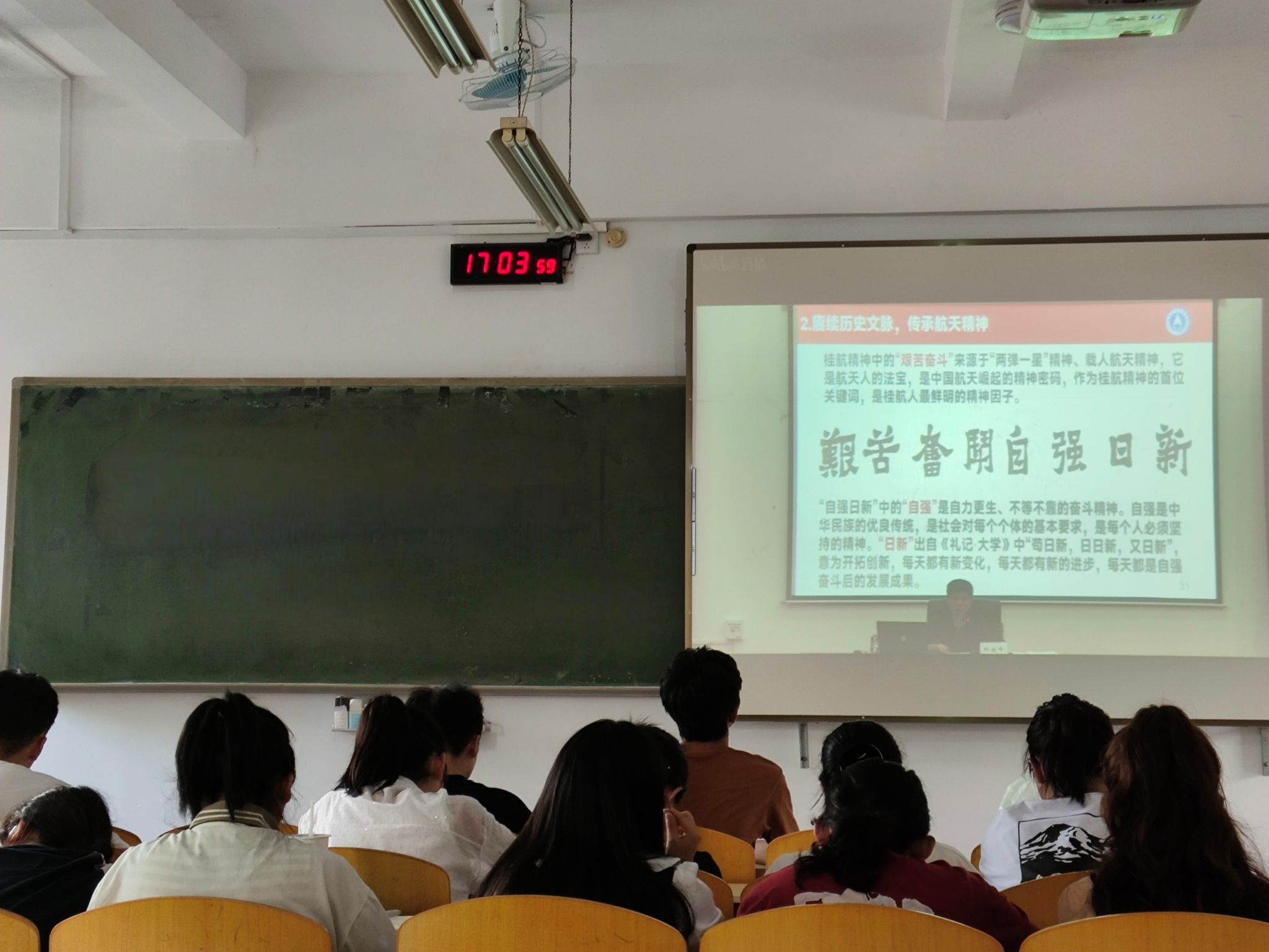 韩峻峰结合中国共产党人精神谱系当中的航天精神、学校45年的发展历史、学校航天文化育人特色、优秀教师代表以及党的二十届三中全会精神,从“回顾历史成就,感悟航天精神”“赓续历史文脉,传承航天精神”“秉承航天精神,书写青春华章”3个方面为新生讲授“开学第一课”。