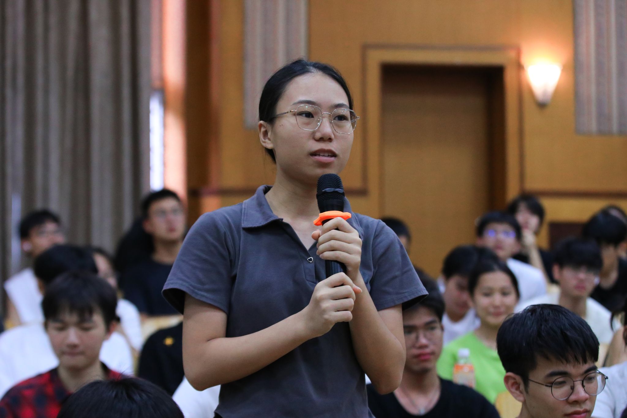 讲座持续近2个小时,在提问环节,新生们青春洋溢、积极主动,结合中国共产党人初心使命、自身所学专业及入学后的生活体验等方面向韩峻峰提问。韩峻峰逐一为同学们答疑解惑。
