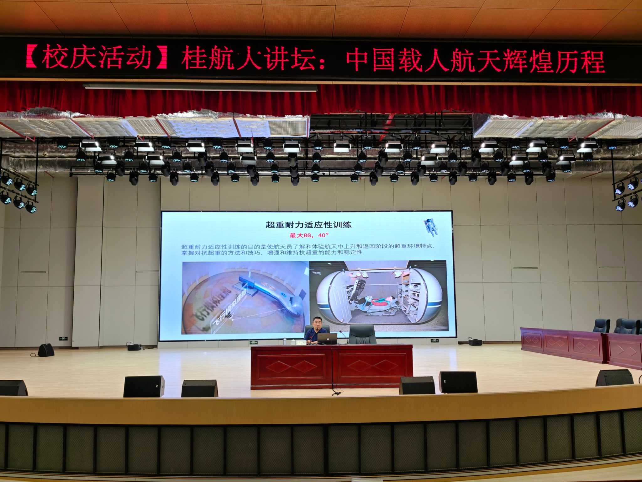 为进一步深化红色航天文化“大思政课”育人实践,适逢开云校庆45周年之际,10月19日,航空航天专家、原国家首批航天员兼航天员教练吴杰大校走进“开云大讲坛·校庆活动专场”,在问天楼学术报告厅进行“航天精神进校园——中国载人航天辉煌历程”的主题宣讲。副校长张立国主持宣讲会,广西首个“钱学森班”等800名师生同上一堂航天思政课。