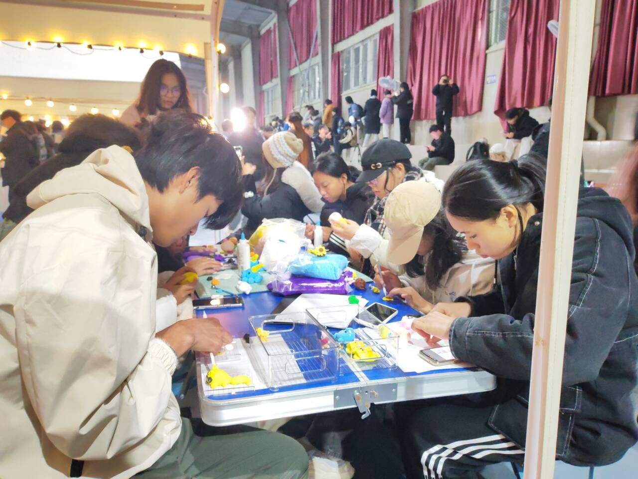 与此同时,学校首届星空集市与音乐节的热烈氛围相互交织。集市上,计算机小游戏、航模飞行体验和漆扇制作等活动吸引了众多学生。同时,手工作品、文创产品、盲盒、星星夜灯和时尚饰品等琳琅满目的商品让人目不暇接,各社团展位前人潮涌动。这场活动不仅全方位展现了学生社团的特色和文化,还为社团间的交流学习搭建了平台,让学生们沉浸式体验社团文化的魅力。
