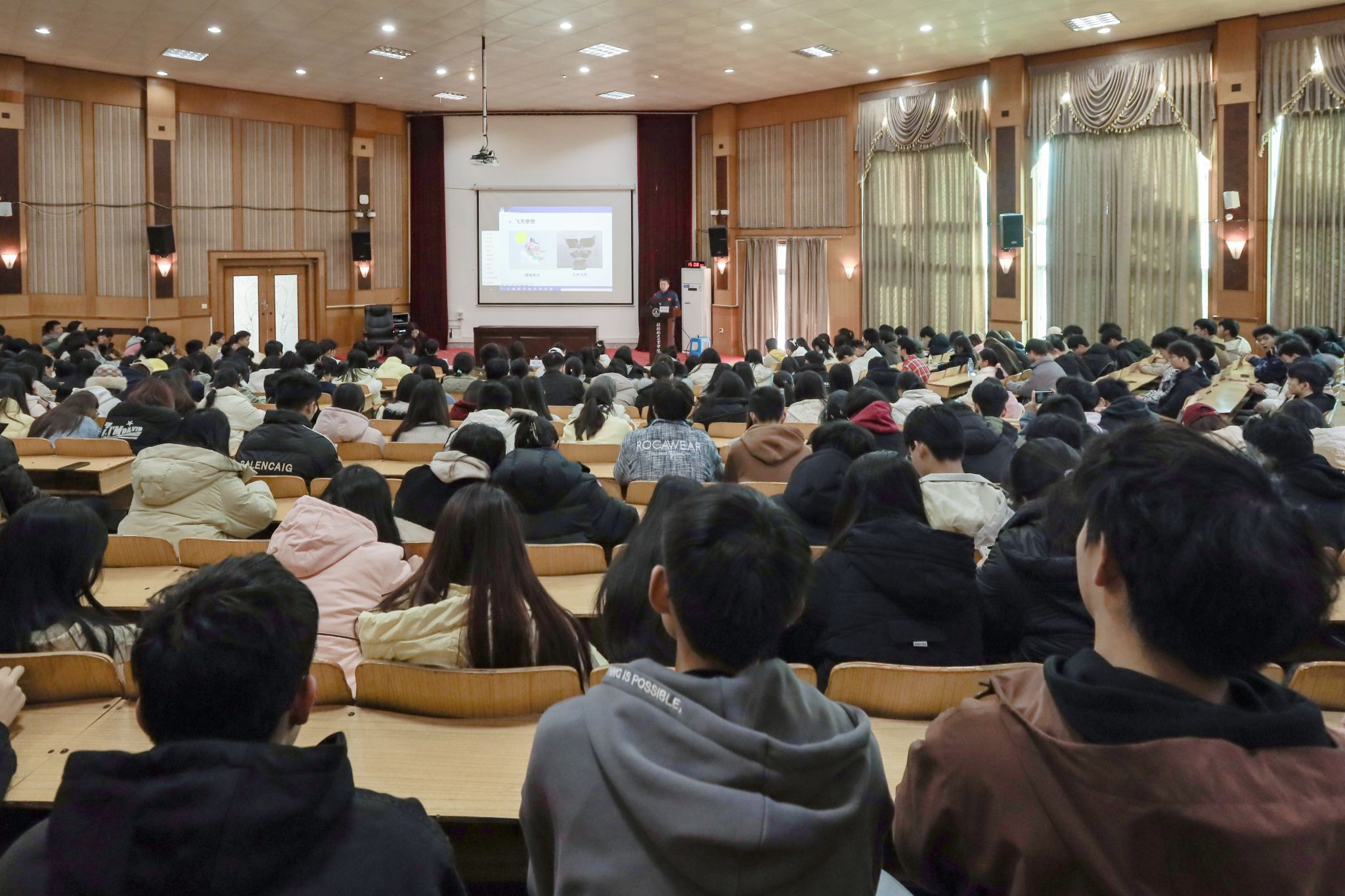 柏合民在报告中回顾了中国航天事业的发展历史,用翔实的资料、生动的语言讲授中国载人航天从蓝图绘梦到奋斗圆梦,几代中国航天人如何完成“三步走”战略任务,建成自主建造、独立运行的“天宫”空间站。柏合民还向师生们展示了一系列珍贵的历史图片,带领我们一同回顾了祖国在神舟飞船与空间站实验舱等方面所取得的伟大成就,中国航天人如何在浩瀚宇宙中薪火相传。