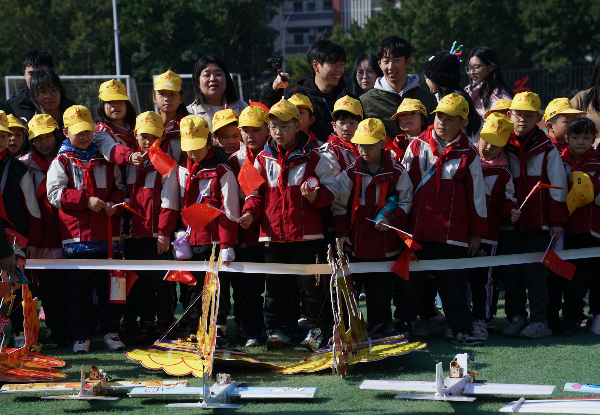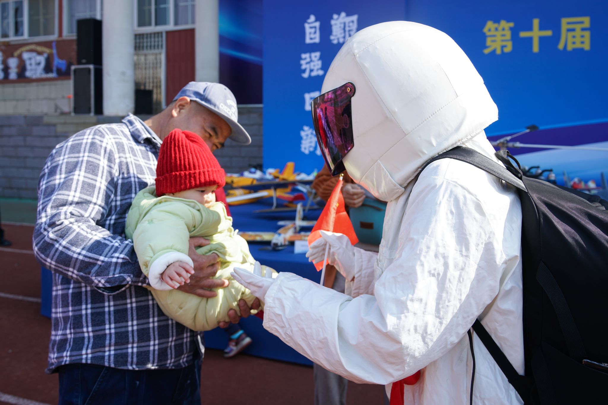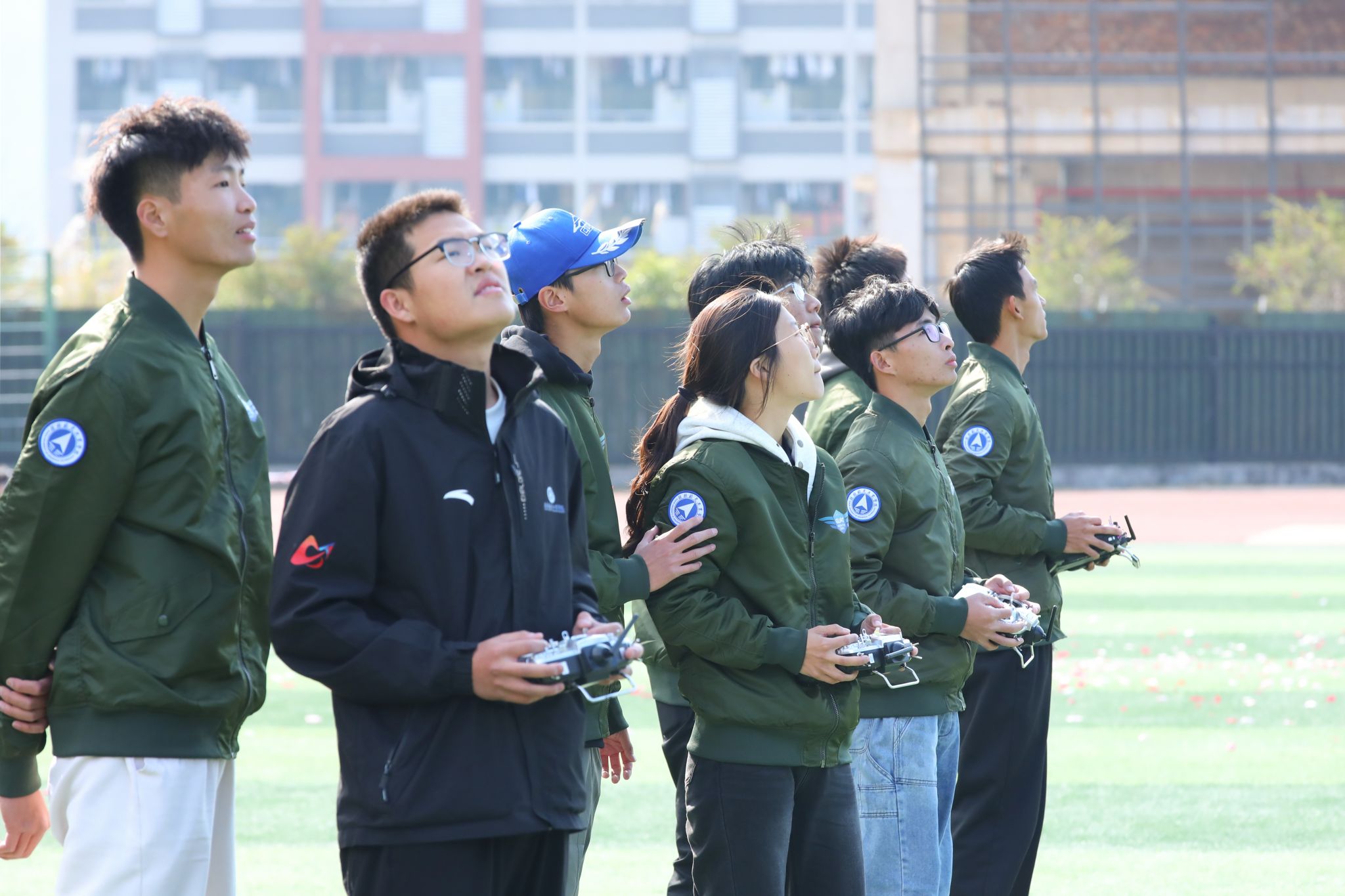 曾在全国各类比赛中获得荣誉的飞行器在飞手们的操控下腾空而起,并在空中完成一连串飞行特技动作,现场掌声不断。飞手们按照“严肃认真,周到细致,稳妥可靠,万无一失”的16字方针,刻苦训练,零失误完成全场表演。历经十年,飞行器表演项目不断创新优化,航模空中空投、彩带、冷焰、烟花,创意飞行,成就了很多精彩瞬间,特别是穿越机追击气球,让人眼前一亮。这支队伍展现了航天品质应用型人才的特质,开云青年学子的精气神,赢得了在场专家领导的高度认可。观众席中前来参加航天科普行动的小学生们也挥舞着国旗,精彩的飞行特技表演在孩子们心中种下了航空航天的科技梦想。
