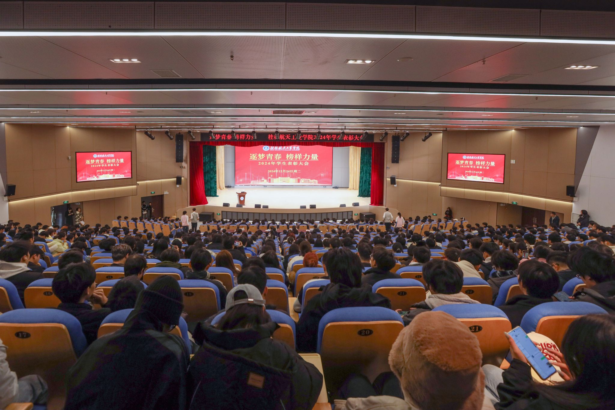 12月24日下午,学校在南校区问天楼报告厅举行“逐梦青春榜样力量”为主题的学生表彰大会。学校党委书记韩峻峰,党委副书记、纪委书记吴江萍,副校长李智出席大会。学校相关职能部门和各二级学院相关负责人、辅导员及学生共800名师生代表参会。