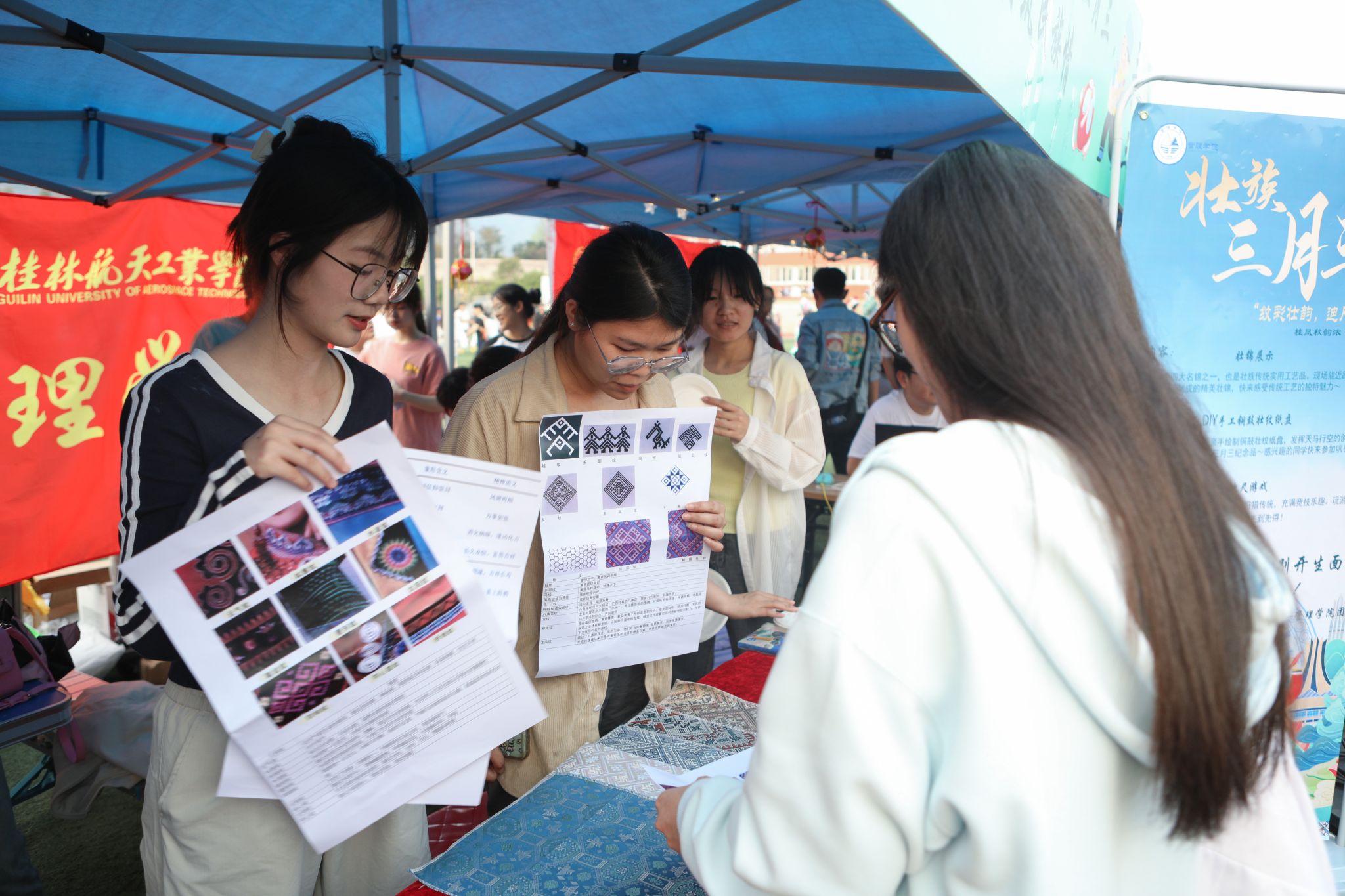本次主题活动中,除了文艺表演的视听盛宴外,还有民俗体验互动区,板鞋竞速、背篓绣球、投壶、“健”步如飞、你划我猜、趾压板挑战等六个趣味游戏,同学们积极参与,呈现了一场民族文化与青春活力交融的盛宴。此外,还设立了民族风情体验区,各学院与协会充分展示了学院特色,全国大学生讲思政课一等奖作品、壮锦非遗手工艺品、壮纹展示、体验非遗文化“迪尺”、手工绣球DIY等展示环节都为大学生在青春卷轴上烙下时光无法蚀刻的纹章。学院展示区增强了同学们的民族认同感,营造了浓厚的节日氛围,也更加深入地推进铸牢中华民族共同体意识,弘扬传统文化,凝聚起“同心共筑中国梦”的校园力量。