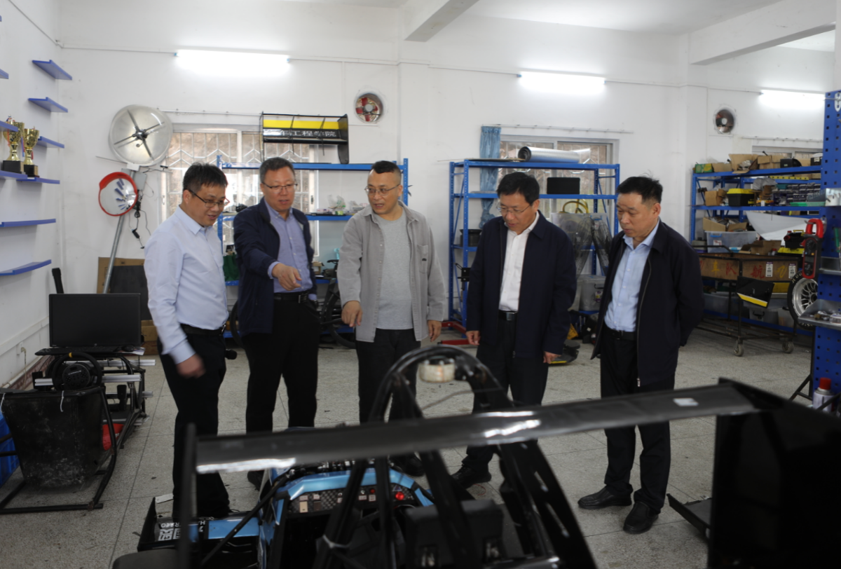 会前,韩文仲、陈刚一行参观了学校校史馆、机电工程学院广西特种工程装备与控制重点实验室、汽车工程学院车辆工程训练中心和航空宇航学院航空航天工程实验教学中心。