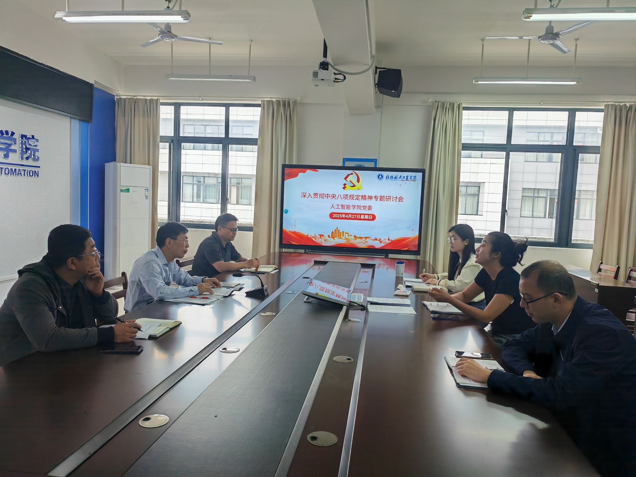 人工智能学院党委切实推动师生党员、干部准确掌握中央八项规定精神的主旨要义和内涵要求。在读书班交流研讨环节,中心组成员分别结合自身工作实际进行研讨。大家一致认为,要不断强化学习教育的成效转化,切实转变工作作风、增强岗位意识、树立崇高情感,把开展深入贯彻中央八项规定精神学习教育同推进硕士点建设等重点任务落实结合起来,以作风建设的新成效推动学院高质量发展。