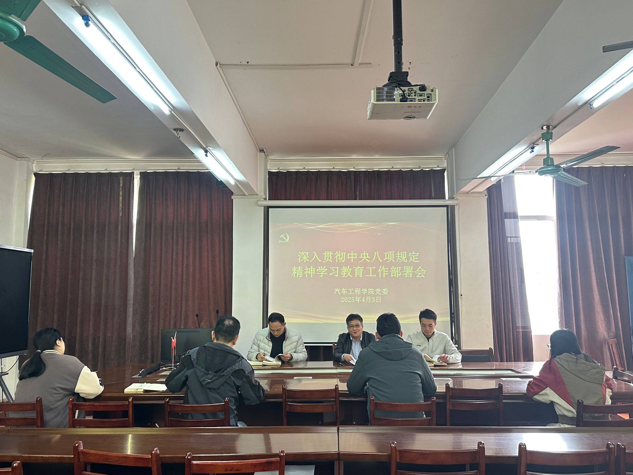 汽车工程学院党委学习内容充实丰富,聚焦学习教育主题,结合学院实际,一体推进学查改,从严从实抓好教育培训、学习研讨、查摆问题、集中整治、巩固深化等工作,全面落实中央、自治区党委及学校党委关于开展深入贯彻中央八项规定精神学习教育相关要求,在夯实作风建设中打牢思想根基,以钉钉子精神涵养优良作风推动学院高质量发展。