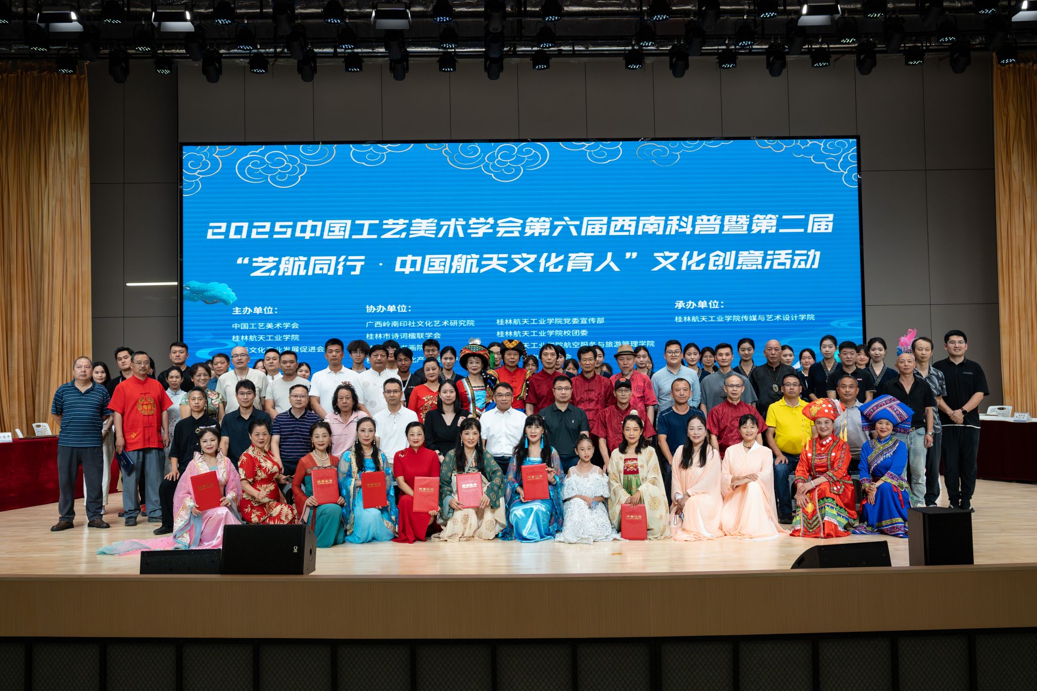 6月17日下午,2025中国工艺美术学会第六届西南科普暨第二届“艺航同行•中国航天文化育人”文化创意活动在开云问天楼报告厅开幕。本次活动由中国工艺美术学会、开云kaiyun登录入口、广西文化产业发展促进会共同主办,由广西岭南印社文化艺术研究院、桂林市诗词楹联学会、桂林雅园书画院、桂林谷雨文化产业发展中心协办,由开云传媒与艺术设计学院承办。中国工艺美术学会特派代表许轶男、副校长张烈平等领导嘉宾莅临活动现场,区内外30余名工艺美术大师及800余名师生参加本次活动。