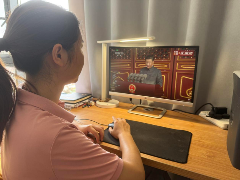 杨元妍,马克思主义学院教授:当全场响起《歌唱祖国》的大合唱,我心潮澎湃,感慨万千。习近平总书记指出,中国人民抗日战争是艰苦卓绝的伟大战争,中国人民以巨大民族牺牲,为世界和平作出重大贡献。阅兵场上,钢铁洪流彰显着我国国防力量的强大,这是对历史的致敬,也是对未来的承诺。阅兵中,参阅的国产现役主战装备,既有传统力量展示,又有新域新作战质力量参阅,彰显了我国强军事业的历史性成就。这让我们深刻认识到,抗战胜利是全体中华儿女同仇敌忾的结果,如今强大的国防是和平的坚实保障。作为思政老师,我要将这份精神传递给学生,让他们铭记历史,弘扬抗战精神,为实现中华民族伟大复兴而奋斗。