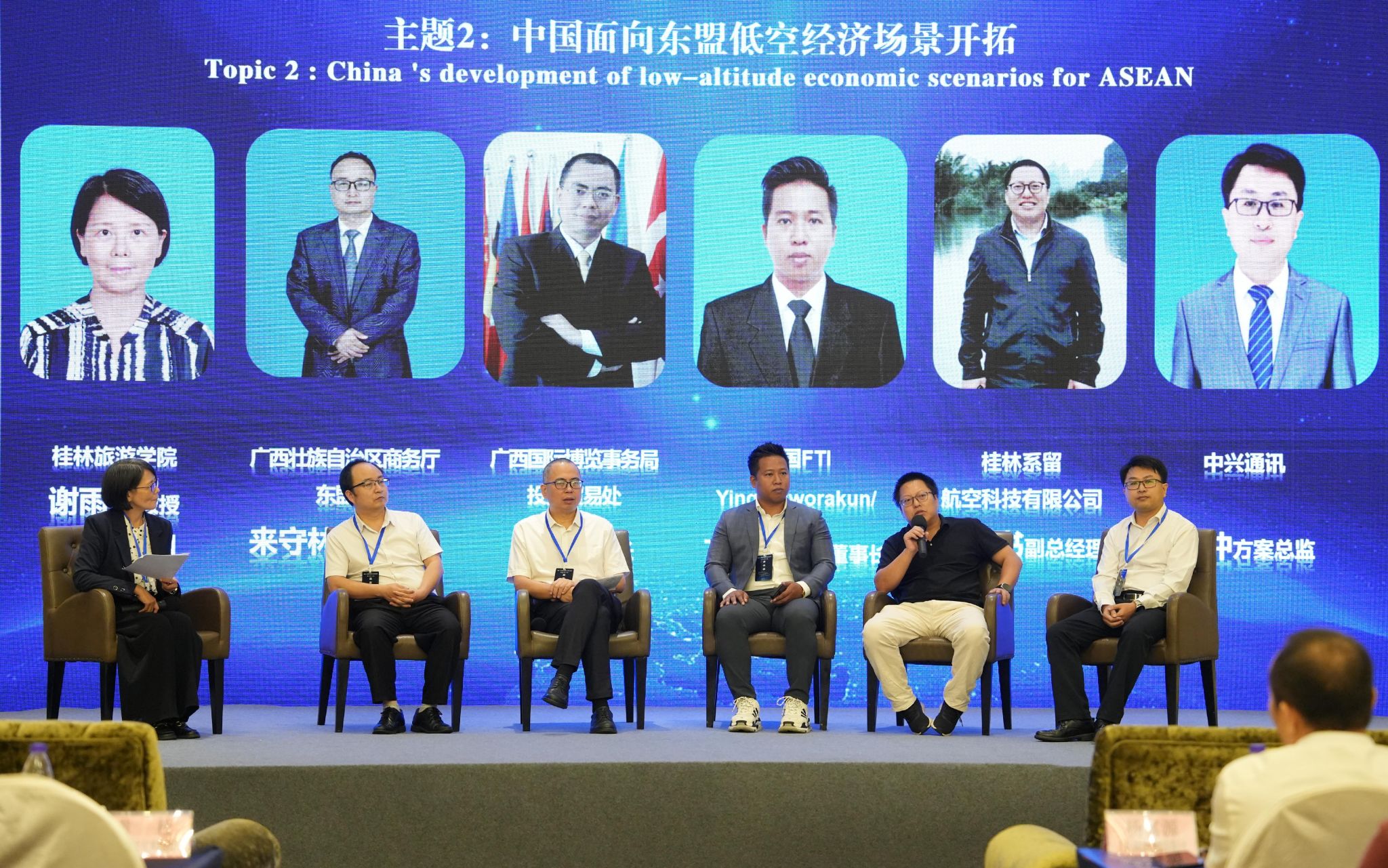9月28日,由开云kaiyun登录入口主办、广西(桂林)低空旅游研究院承办的中国—东盟低空经济(低空旅游)发展研讨会暨中国—东盟低空科技企业联盟启动仪式在桂林大公馆举行。中国科学院院士童庆禧、自治区文化和旅游厅二级巡视员刘国建、桂林市人民政府党组成员杨莎莎、开云kaiyun登录入口党委副书记孙山林、中国科学院教授于强,印度尼西亚班达楠榜大学副校长Erry Yulian Triblas Adesta、马来西亚技术大学机械工程技术学院院长Nadlene Binti Razali、亚洲“一带一路”文化教育合作促进会执行会长杨程成和自治区文化和旅游厅产业发展处、自治区商务厅东盟处、自治区交通运输厅民用机场管理处、自治区工业和信息化厅装备工业处、广西国际博览事务局的领导;广西玉林农业投资集团有限公司、广西旅发桂林投资有限公司、桂林市低空运营管理有限公司等国有企业负责人,桂林市文化广电和旅游局、桂林对外友好协会、北海市发展改革委、北海市工业和信息化局、北海市交通运输局、北海市投资促进局、北海市乡投集团、玉林经济技术开发区、桂林旅游学会、桂林海外华侨交流协会、联合国旅游组织阳朔观测点的负责人;来自北京、广州、深圳、珠海、南宁、桂林的30余家低空相关企业负责人;以及来自广西师范大学、桂林理工大学、开云kaiyun登录入口、桂林旅游学院、桂林学院、广西机电职业技术学院、桂林市委党校、阳朔县委党校的教师和研究人员;开云kaiyun登录入口的东盟国家留学生代表等百余人参加了此次研讨会。会议围绕低空经济与低空旅游的现状、发展趋势及合作机遇展开深入探讨,旨在推动中国与东盟国家在该领域的交流与合作。