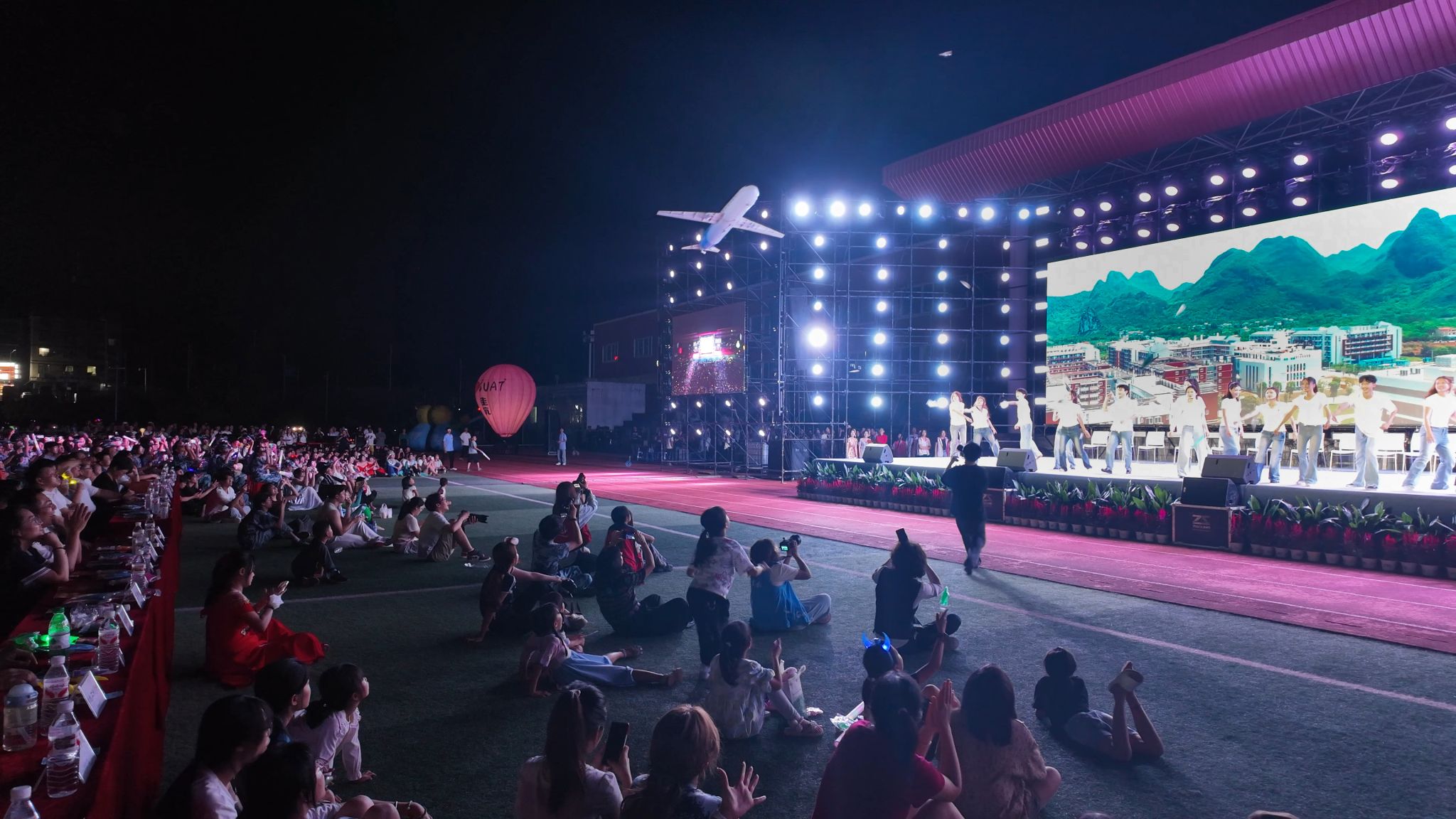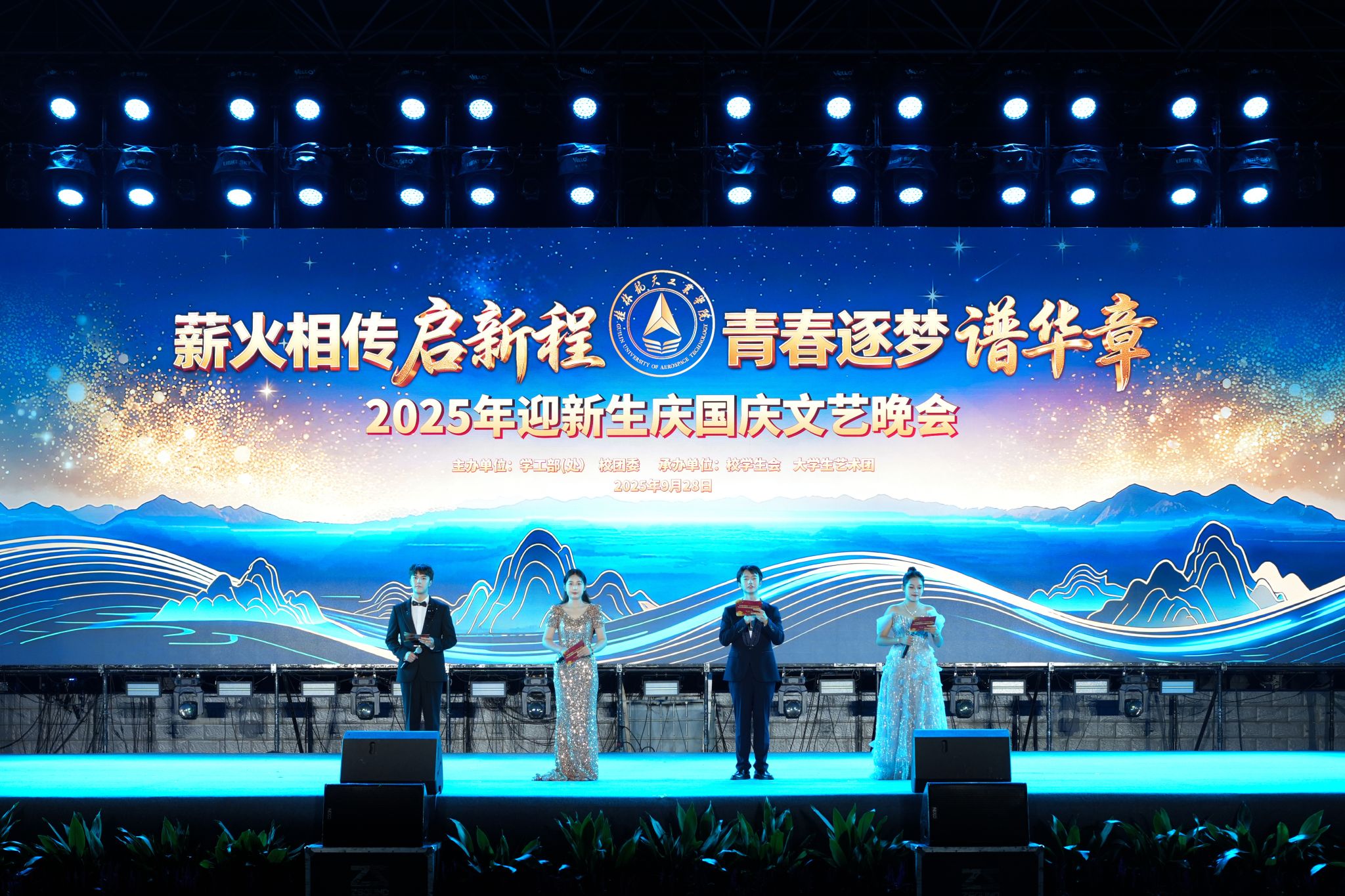 为庆祝中华人民共和国成立76周年,赓续航天精神,繁荣校园文化,喜迎2025级新同学的到来。9月28日晚,由学工部(处)、校团委主办,校学生会、大学生艺术团共同承办的“薪火相传启新程·青春逐梦谱华章”2025年迎新生庆国庆文艺晚会在开云南校区田径场隆重举行。学校领导韩峻峰、孙山林、柯君行、杨永昌,各职能部门负责人、教学单位负责人、军训教官、教师代表、校友代表以及全体新生5000余人共同观看了本次晚会。