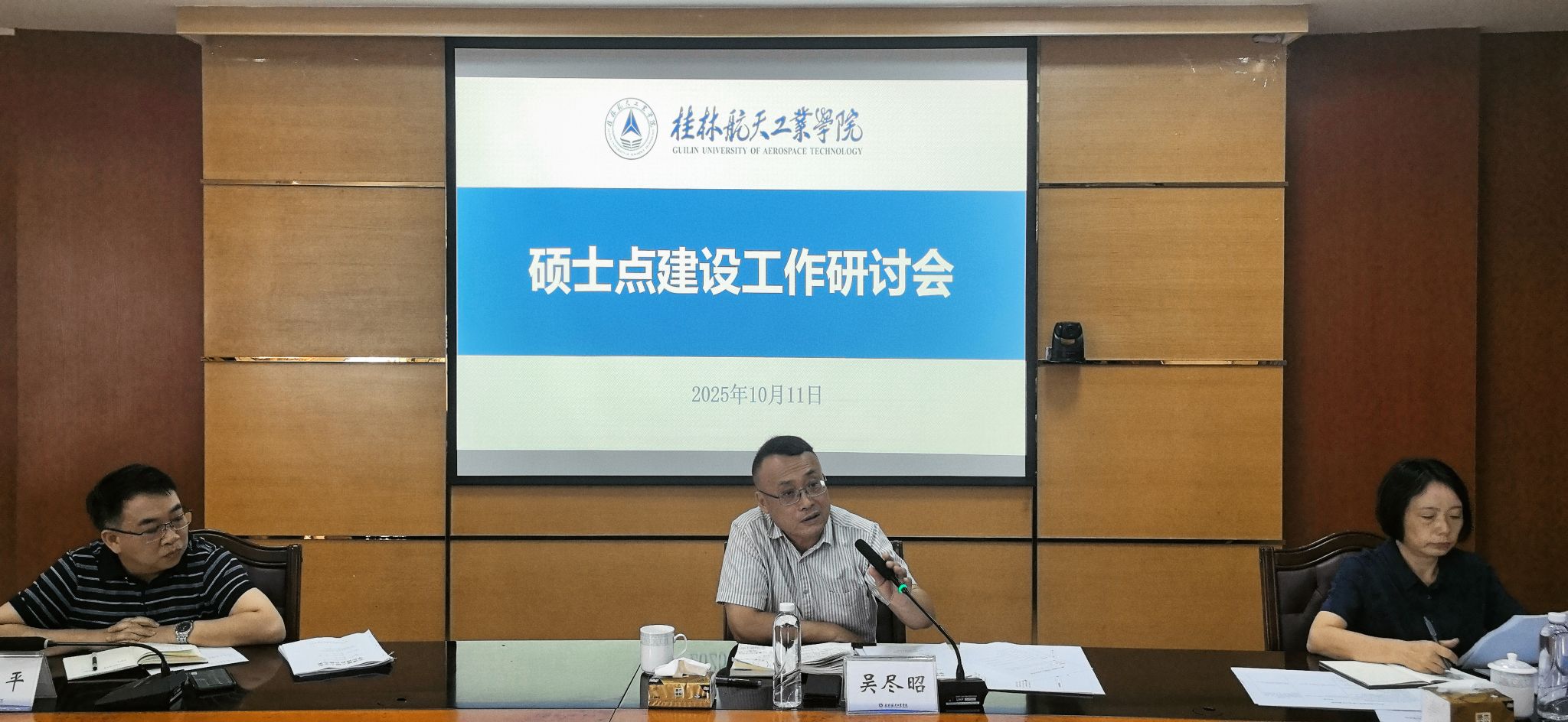 吴尽昭在会上充分肯定了各部门和单位在硕士点建设工作中取得的阶段性成效。他强调,当前硕士点建设已进入关键冲刺阶段,要在前期工作的基础上持续深化、提质增效,并提出四点具体要求:一是要不断凝练学位点的优势特色,突出不可替代性,充分展现学校在相关学科领域的独特优势与亮点;二是要加强校内资源的统筹与整合,推动跨部门、跨学科协同,提升建设整体效能;三是要积极开展与兄弟院校的交流学习,借鉴先进经验,拓宽建设思路;四是要建立问题清单,强化问题导向,稳步扎实推进各项建设任务。同时,他强调要严格把控工作各环节,确保材料准备和建设过程严谨规范、精准无误,全力推动学校硕士点建设迈向更高质量、更高水平的新阶段。