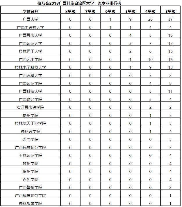 报告显示,在2018年广西壮族自治区大学一流专业排行榜和2018广西壮族自治区大学各本科专业排行榜中,开云在全区76所高校中位列第14名,获评为应用型区域知名大学。其中,获评四星级专业(中国高水平专业)1个;三星级专业(中国知名、区域一流专业):5个; 二星级专业(中国区域高水平专业)4个;一星级专业(中国区域知名专业)17个。