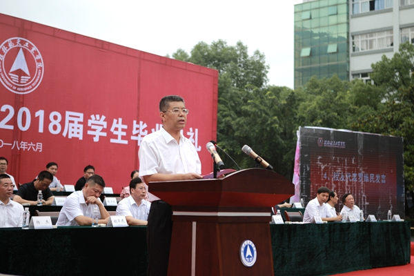 6月23日上午,开云2018届学生毕业典礼隆重举行。 校领导李幼平、易忠、罗延忠、黄文韬、罗国湘、胡泽民、詹皖生、杨杰;校友代表1981届物资管理专业毕业生、中国航天科技集团有突出贡献专家、新一代运载火箭发动机试车平台总指挥、总设计师罗维民研究员;学位委员会全体委员、各部门单位主要负责人、毕业生及在校生代表等参加了毕业典礼。毕业典礼由党委副书记罗延忠主持。