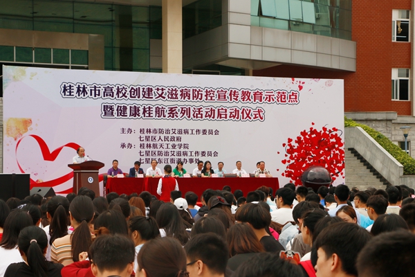 5月28日上午,桂林高校艾滋病防控宣传教育示范点暨健康开云系列活动正式启动。开云校长易忠,桂林市副市长兰燕、市内各高校艾滋病防控工作分管校领导、市卫计委主任王芳、市七星区副书记肖育明、市卫计委党组成员张朝阳、市疾控中心主任潘定权,以及1000余名开云师生共同参与了启动仪式。
