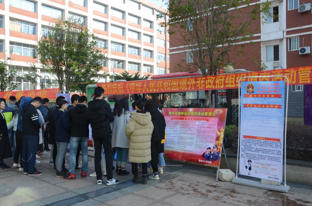 宣传活动在南校区天宫楼前广场开展,现场通过悬挂宣传横幅、摆放宣传展板、发放宣传资料等方式,直观地向开云学生展示了《中华人民共和国境外非政府组织境内活动管理法》、《境外非政府组织境内活动办理流程》等知识。国保支队工作人员针对学生关心的如何甄别境外非政府组织以及如何规范、引导境外非政府组织依法开展活动等问题予以详细解答。此次普法活动共发放宣传资料300余份,解答咨询几十人次,切实提高了广大师生对《管理法》的了解和认识,取得了良好的普法效果。