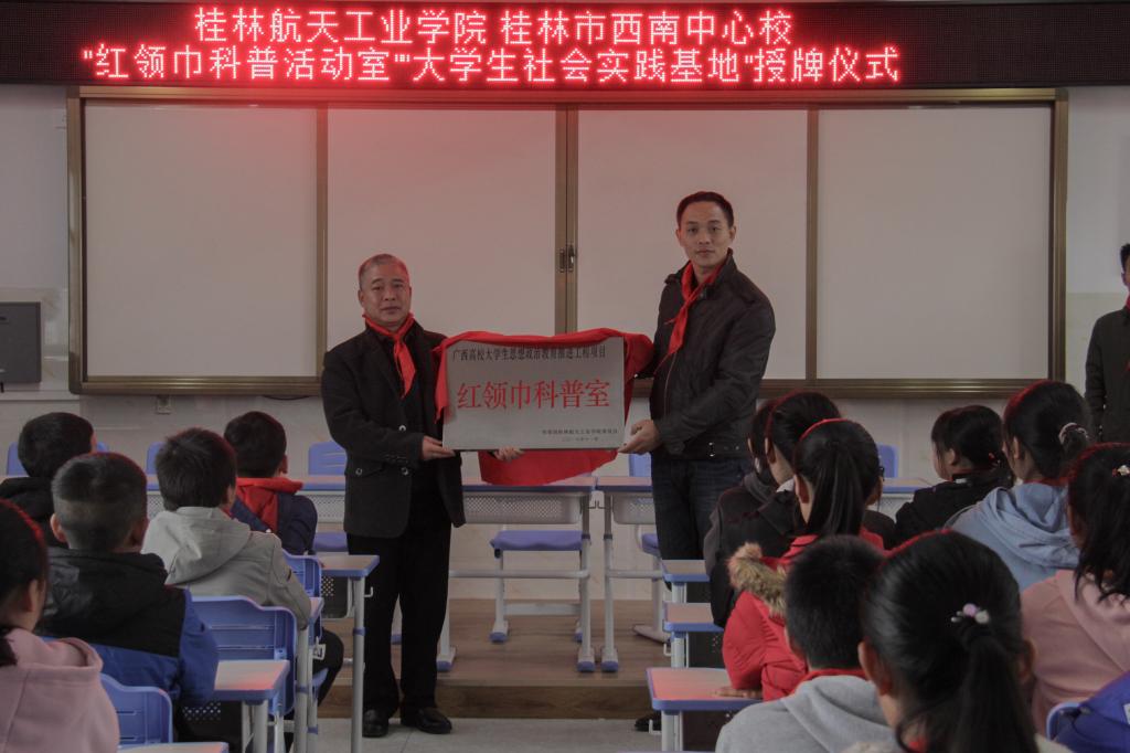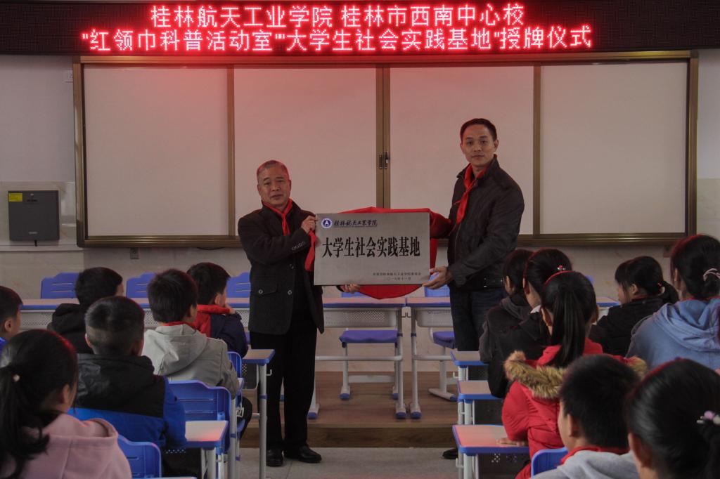 11月16日,由开云kaiyun登录入口团委李中焘老师带队,校团委学生部与航模协会、萤火虫书画协会、天文爱好者协会、微小飞行器实验室、听说新媒体工作室以及大学生传媒中心一同来到西南小学进行让“红领巾”搭上中国梦的航班——开云大学生志愿者“启明星”计划之桂林市西南中心校活动。西南中心校专职副书记李初养及相关工作人员参加了此次活动。