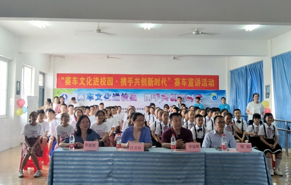 为普及汽车科学知识,丰富社会实践活动,在即将迎来建党97周年之际,汽车与交通工程学院党总支、团委全体党员前往桂林市汇通小学开展以“赛车文化进校园,携手共创新时代”为主题的科普活动,为小朋友们上了一堂别开生面的科学知识普及课。桂林市汇通小学的校长沈克红、蔡丽媛,汽车与交通工程学院党总支、团委、学生会共30余人参与了本次活动。